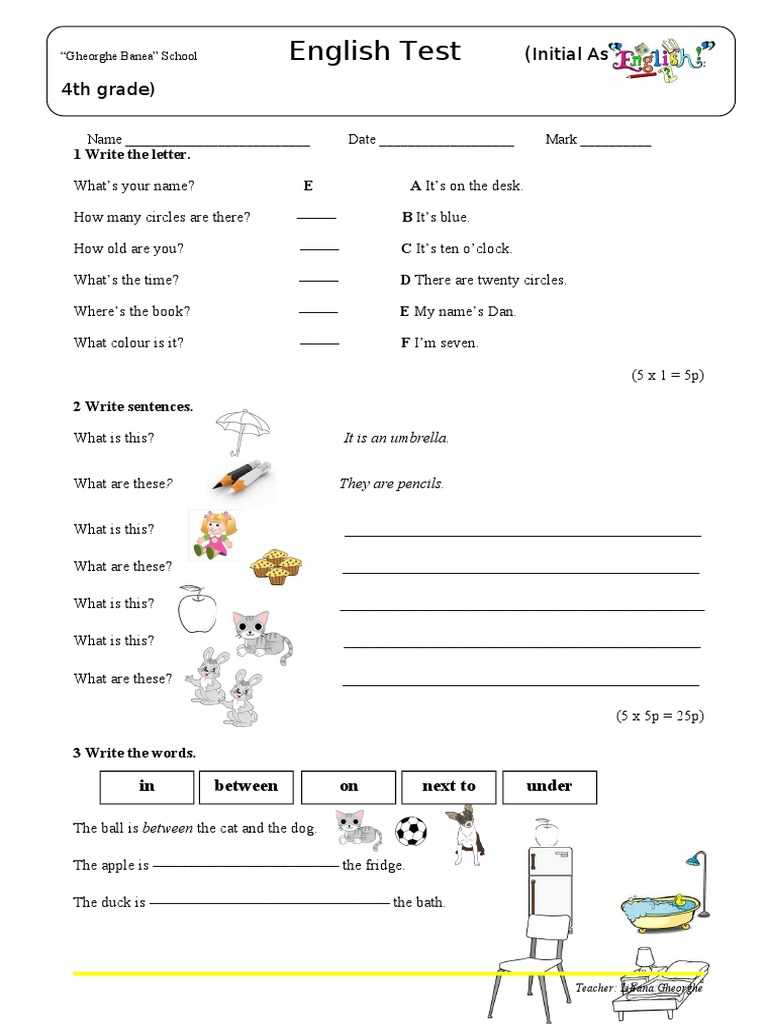 Test Paper Test De Evaliare Limba Engleza Clasa A 4 A English Esl Worksheets For Distance Learning And Physical Classrooms