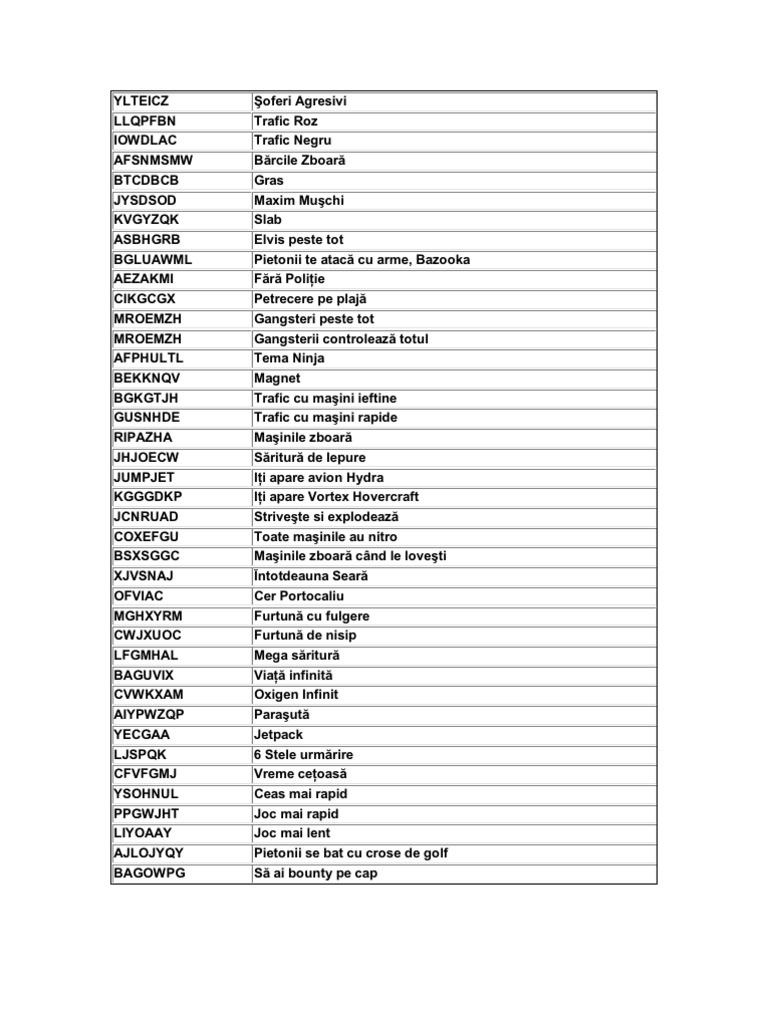 Coduri Gta Romania 2