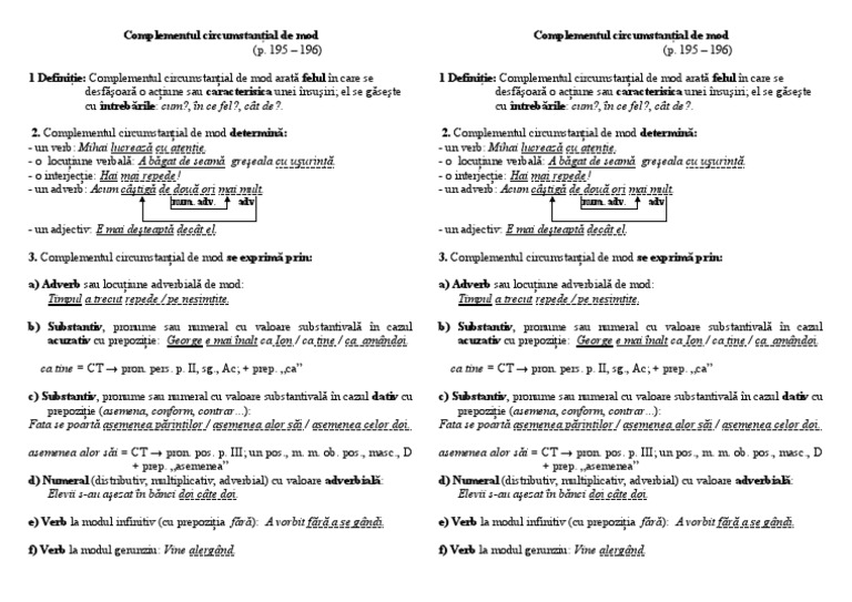 Complementele Circumstanţiale De Loc De Timp Si De Mod Education