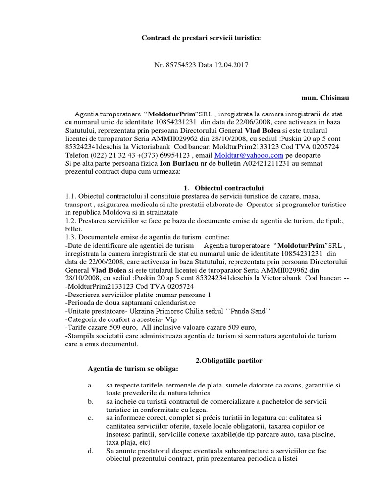 Contract De Prestari Servicii Turistice