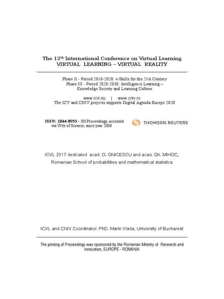 Proceedings Of Icvl 2017 Issn 1844 8933 Isi Proceedings Educational Technology Virtual Reality