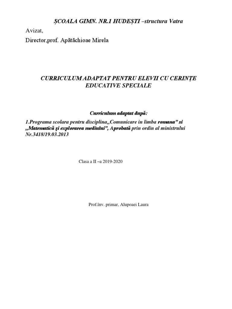 Curriculum Adaptat Clasa A Ii A
