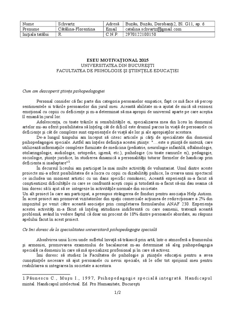 Doc Eseu Motivare Optiune Master Alexandra Lungu Academia Edu