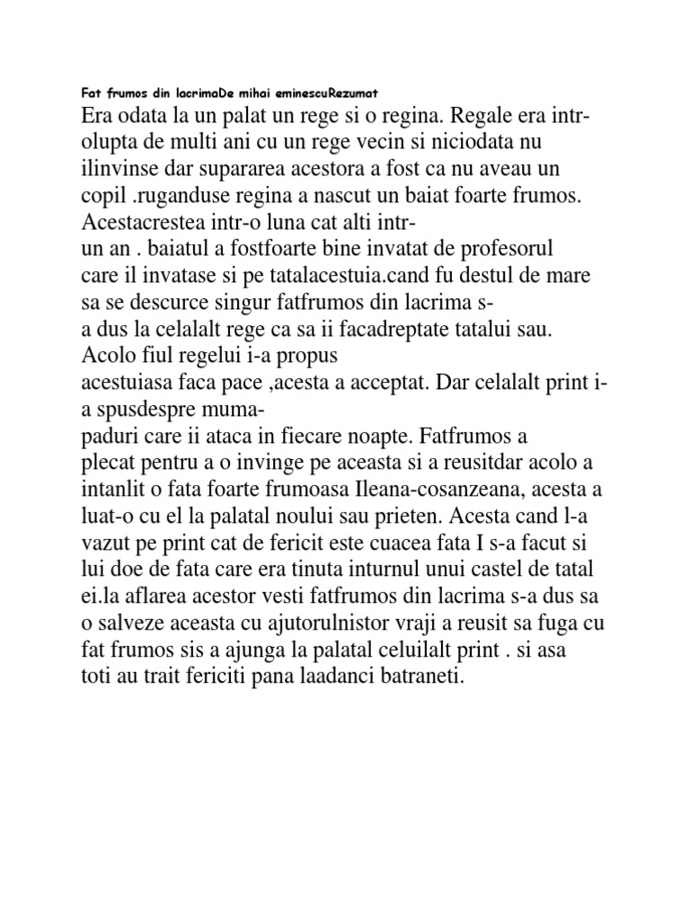 9 Fat Frumos Din Lacrima Rezumat De Scris Doc Eljq8ydz3v41