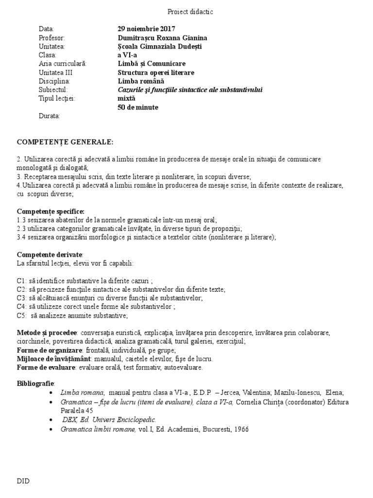 Doc 0 1 Proiect Didacti2 Etudiantes Lettres Academia Edu