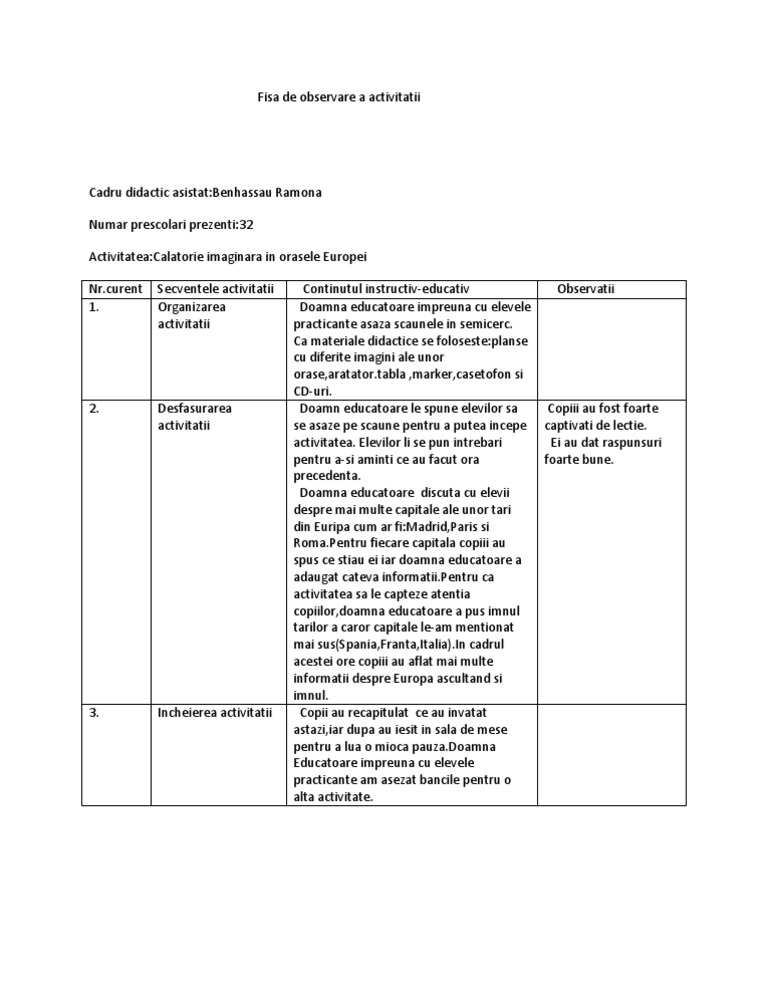 Fisa De Observare A Activitatii Didactice In Gradinita Completata