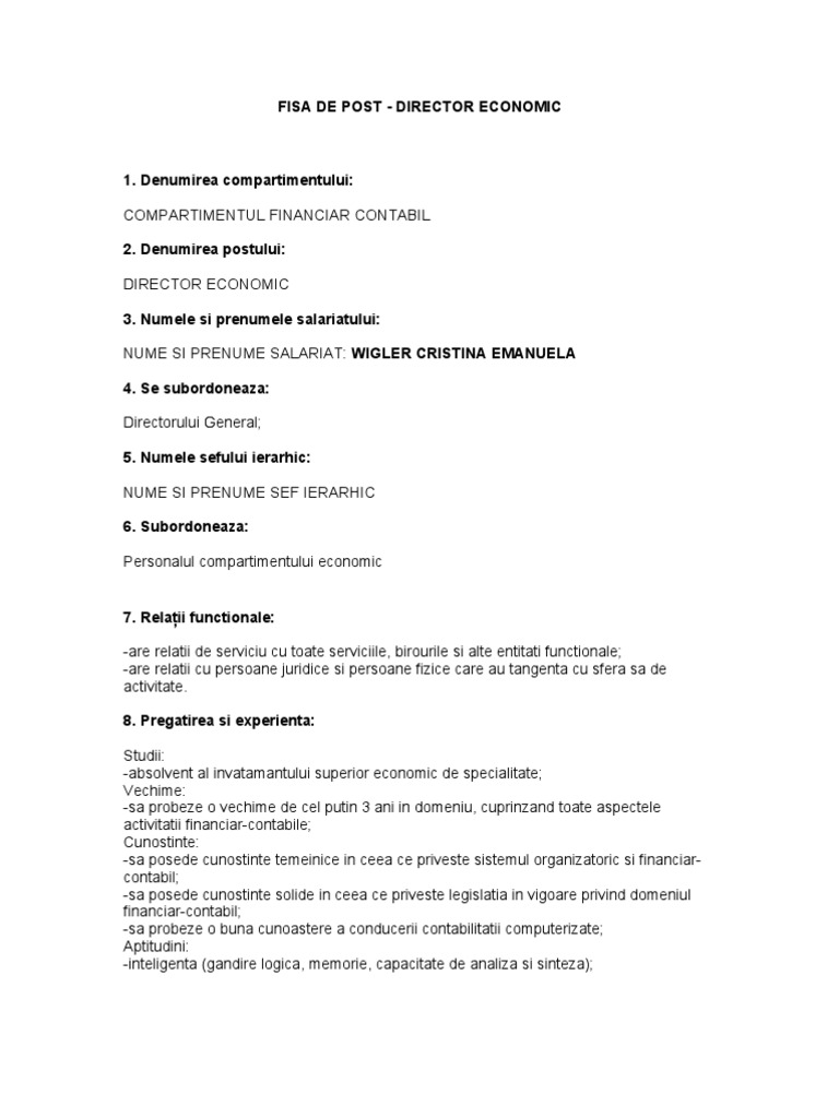 Doc Fisa Postului Extinsa Director Magazin Alina Roca Academia Edu