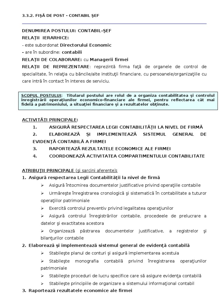 Fișa de post contabil șef model fișa de post gratuit editabil conținut orientativ.