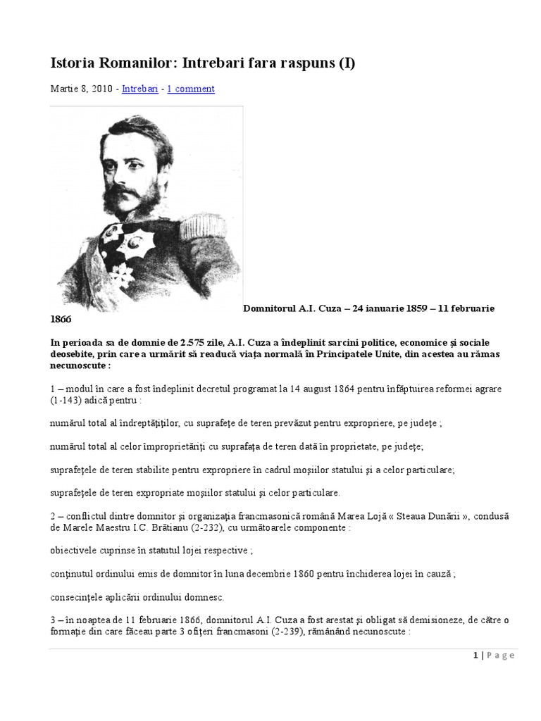 Istorie Cultura Generala Pentru Elevi Intrebari Si Raspunsuri