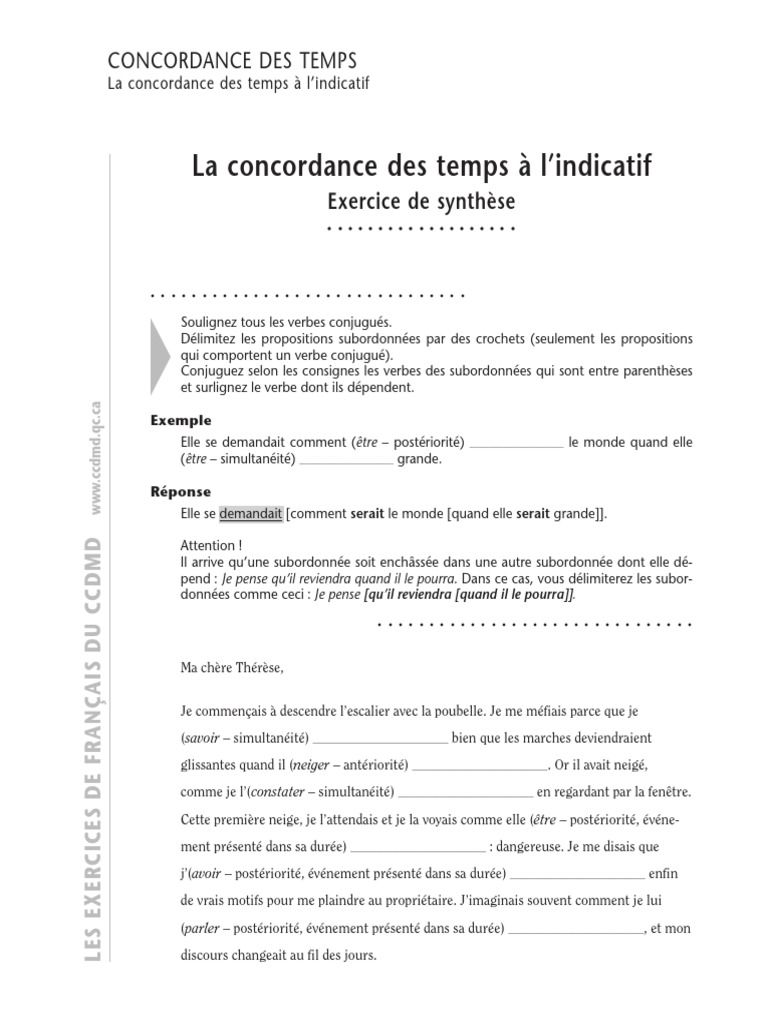 Telecharger Exercices Concordance Des Temps Pdf Pdf La Concordance Au Pdf Exercices Pdf Com