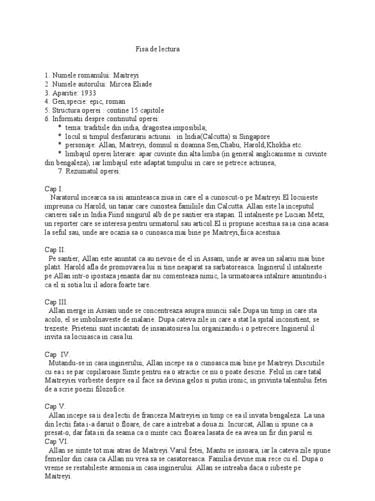 Doc Maitreyi Rezumat Ioana Ioana Academia Edu