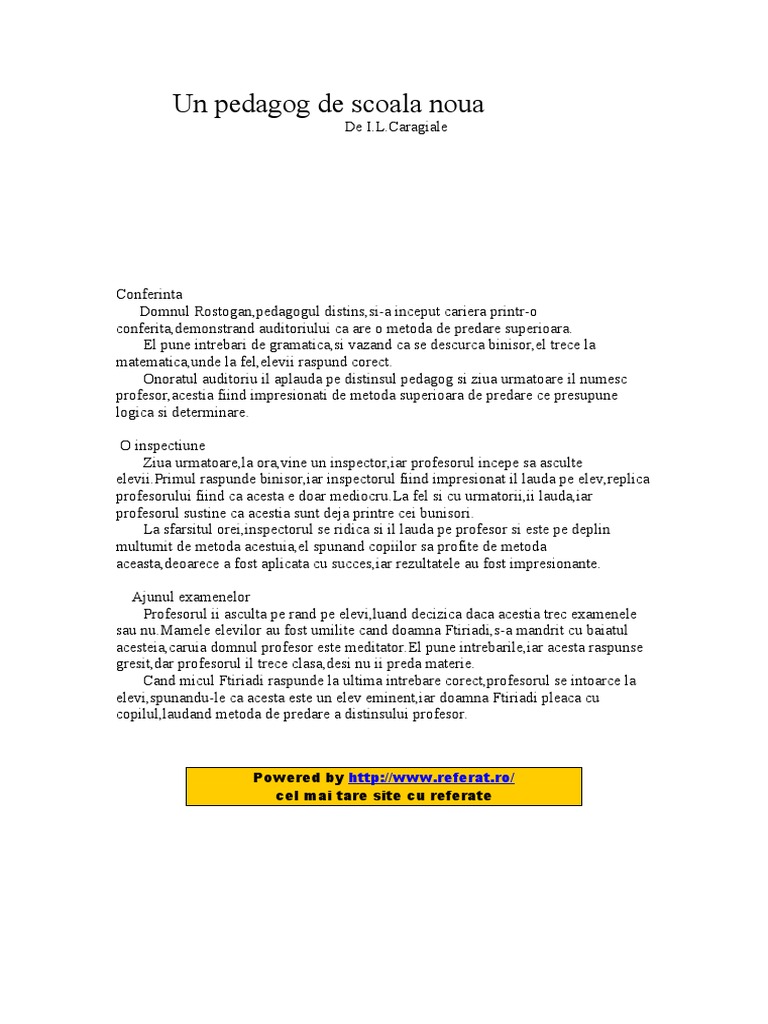 Un Pedagog De Scoala Noua De Ion Luca Caragiale Povesti Basme Legende