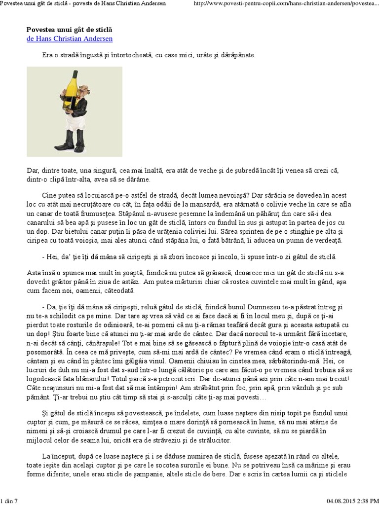 Povestea Unui Gat De Sticlă Hans Christian Andersen Pdf Document