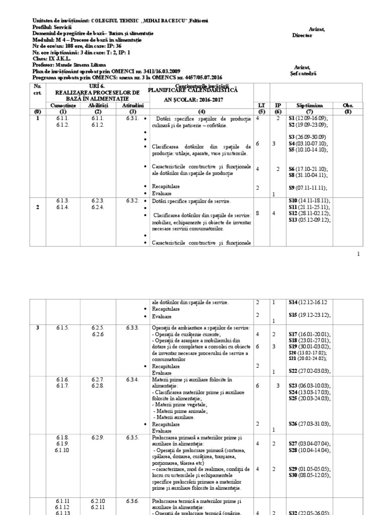 M 4 Procese De Baza In Alimentatie Ix U I