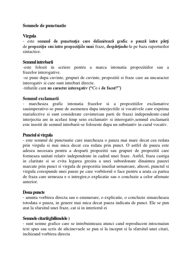 Rolul Semnelor De Punctuatie Si De