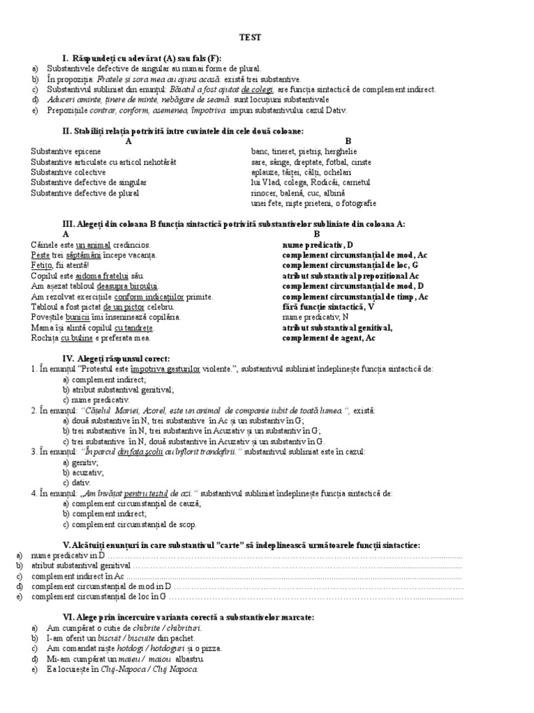Test Substantivul Vii