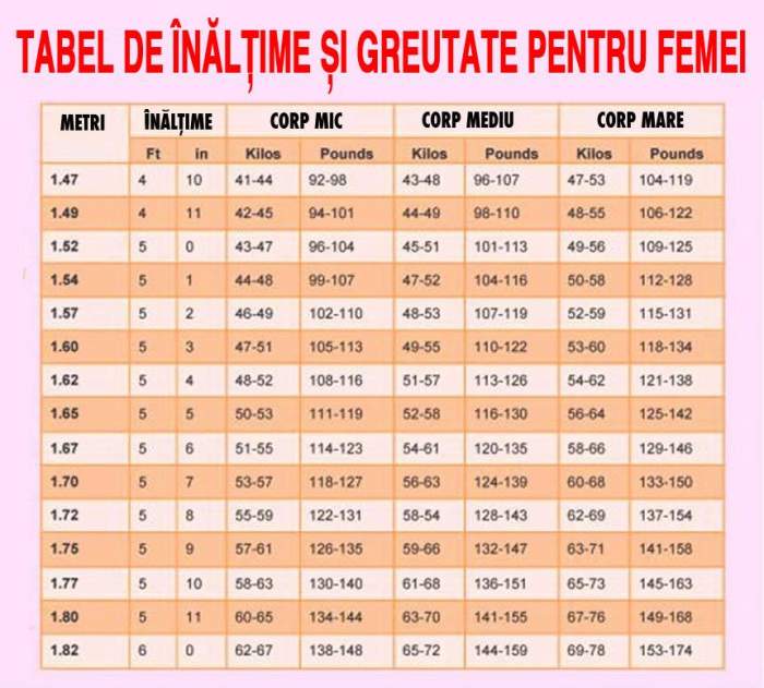Tabel Care Este Greutatea Ideală In Funcţie De Varstă Si Inălţime Calculează Pe Loc News Bensana Romania