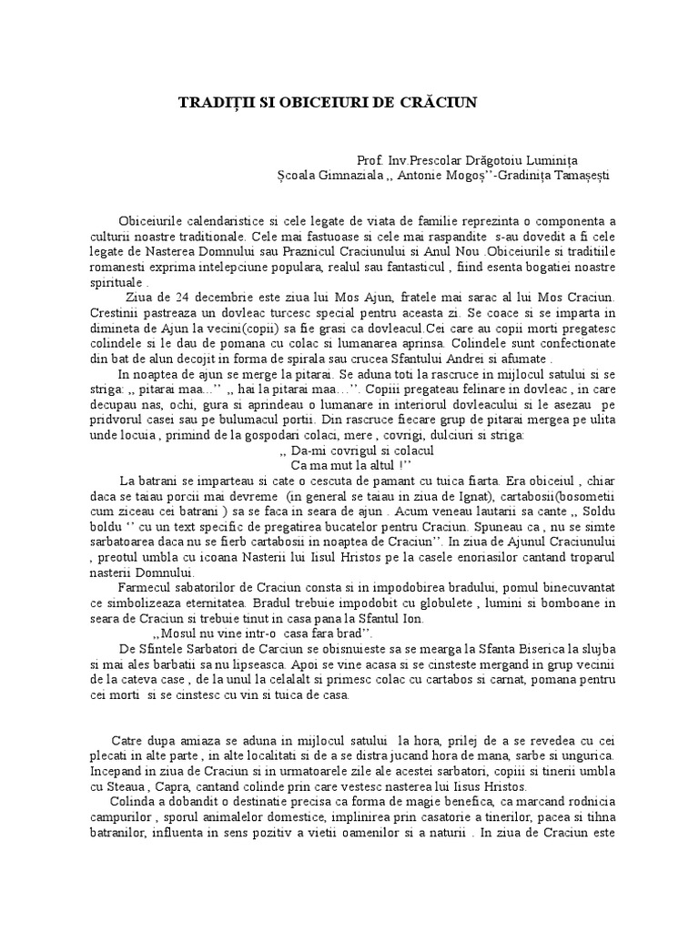 Proiect Obiceiuri De Iarna In Ruginoasa Alte Domenii 167038