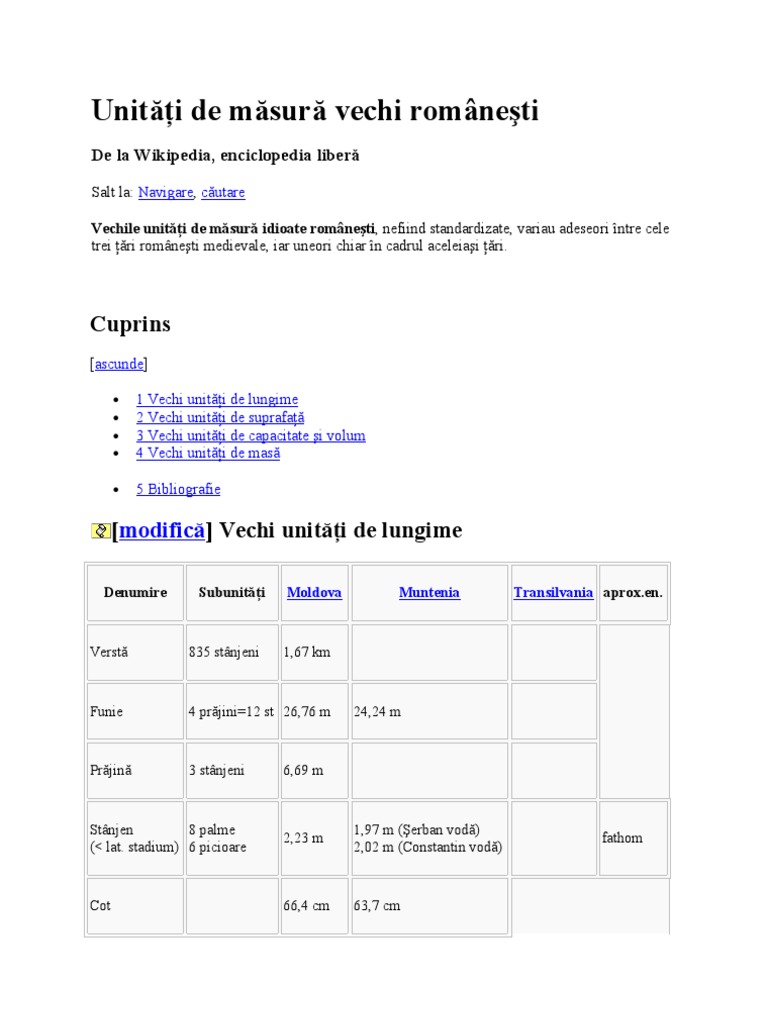 Unităţi De Măsură Vechi Romanesti